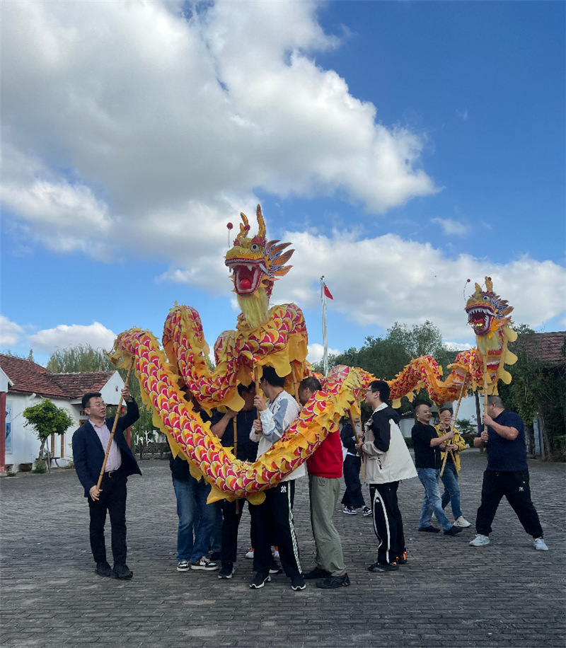 参训教师们在讲解员的带领下,沉浸式感受崇明地域特色和海派非遗“如诗根艺”馆、崇明雕花板博物馆等非物质文化。亲眼见证了“蓝印花布”的编织过程和老匠人精湛的技艺。民俗广场上,舞龙项目考验工会干部身体协调能力和团结协作精神,现场气氛热烈。此外,手工印糕的互动体验也深受好评,老师们纷纷表示“既学到了非遗知识,又感受到了绿色生态与民俗文化的完美融合”。此次活动不仅丰富了工会干部的知识体系,也为建设一支忠诚担当,高素质专业化干部队伍注入了新活力。